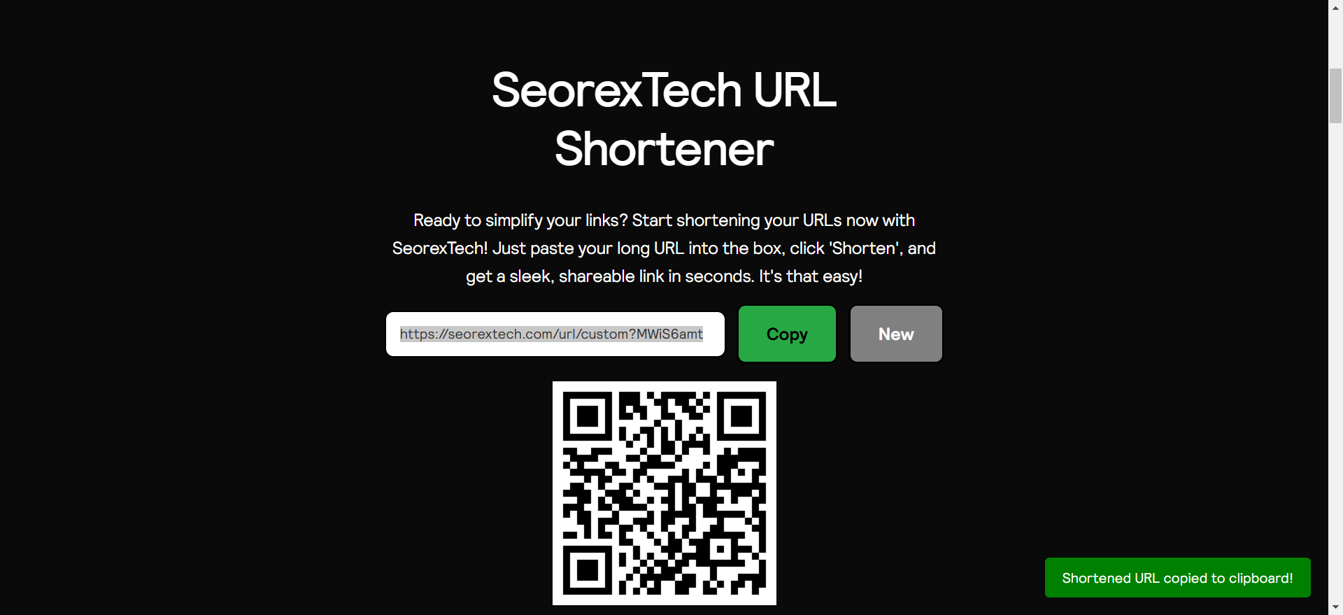 SeorexTech URL Shortener is your go-to tool for creating sleek, compact links that are easy to share and manage. Simplify your URLs while maintaining a professional touch, perfect for boosting engagement and tracking performance effortlessly.
